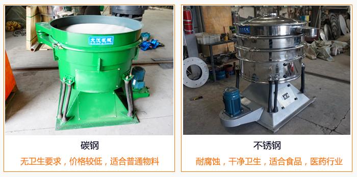 大漢搖擺篩材質(zhì)有碳鋼和不銹鋼兩種,不同材質(zhì),不同價(jià)格。碳鋼就中常說(shuō)的碳素結(jié)構(gòu)鋼,碳鋼一般不具有耐腐蝕性,由于價(jià)格低廉(相對(duì)于不銹鋼)用于各種結(jié)構(gòu)中。不銹鋼用于腐蝕性較強(qiáng)的介質(zhì)中,特別是對(duì)環(huán)條件要求較高的食品,制藥等行業(yè)中。碳鋼的成本低,容易生銹,使用時(shí)間較短,而不銹鋼不易生銹,使用時(shí)間長(zhǎng),表面光滑,由此可見,碳鋼材質(zhì)的搖擺篩要比不銹鋼